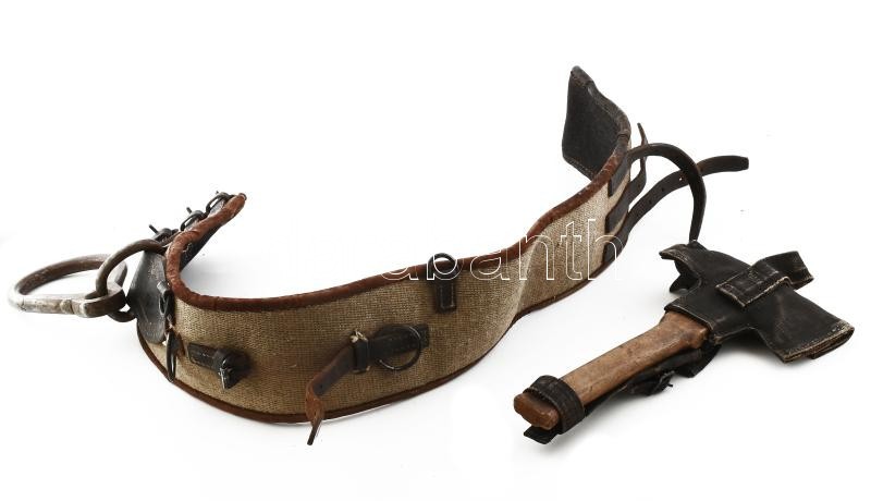 Az 1873-ban alakult MÁVAG Önkéntes Tűzoltóság (Budapest, Golgota utca 6.) által rendszeresített tűzoltó mászóöv. Az övméret 3 db. bőrcsattal állítható. Az öv 115 cm hosszú, 12 cm széles, tartozéka a 11 cm átmérőjű karabiner. A 34 cm hosszú nyeles, vágó-és