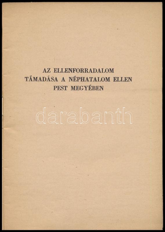 Az Ellenforradalom támadása a néphatalom ellen Pest megyében. Bp., 1957 Egyetemi Nyomda. Kiadói papírkötés.<a href="https://www.darabanth.com/hu/gyorsarveres/411/kategoriak~Konyvek/Konyvek-Tortenelem~1500008/Az-Ellenforradalom-tamadasa-a-nephatalom-