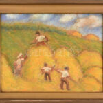 Bálint Rezső (1885-1945): Aratók. Pasztell, papír, jelezve balra lent, 28×34 cm. Üvegezett fakeretben. / Pastell on paper. Signed. 28×34 cm. Framed.<a href="https://www.darabanth.com/hu/nagyaukcio/40/kategoriak~Festmenyek-es-grafikak/Klasszikus-fest