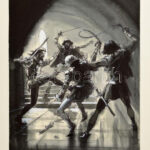 Bánfalvy Ákos (1943-): Illusztráció Fehér Tibor: A ródoszi lovag c. könyvéhez. Lavírozott tus, papír, jelzett, papírra kasírozva. Hátoldalán Móra Ferenc Könyvkiadó Bélyegzőjével. 34,5×24 cm