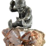 Bányász törpe figura ásvány talapzaton, m: 7 cm