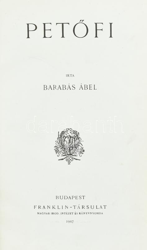 Barabás Ábel: Petőfi. Bp., 1907., Franklin. Átkötött félvászon-kötés, a borítón kis kopásnyomokkal.<a href="https://www.darabanth.com/hu/gyorsarveres/411/kategoriak~Konyvek/Konyvek-Egyeb-ritkasagok~1500021/Barabas-Abel-Petofi-Bp-1907-Franklin-Atkoto