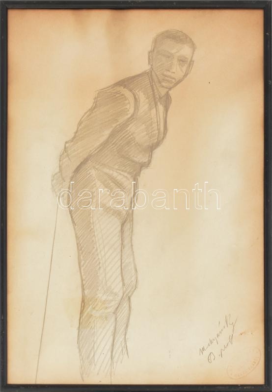 Báró Mednyánszky László (1852-1919): Alak (tanulmány). Ceruza, papír. Jelezve jobbra lent. Mednyánszky hagyatéki bélyegzővel. Üvegezett fakeretben. 42×29 cm / László Mednyánszky, Ladislav Medňanský (1852-1919): Standing figure (study). Pencil on paper. Si