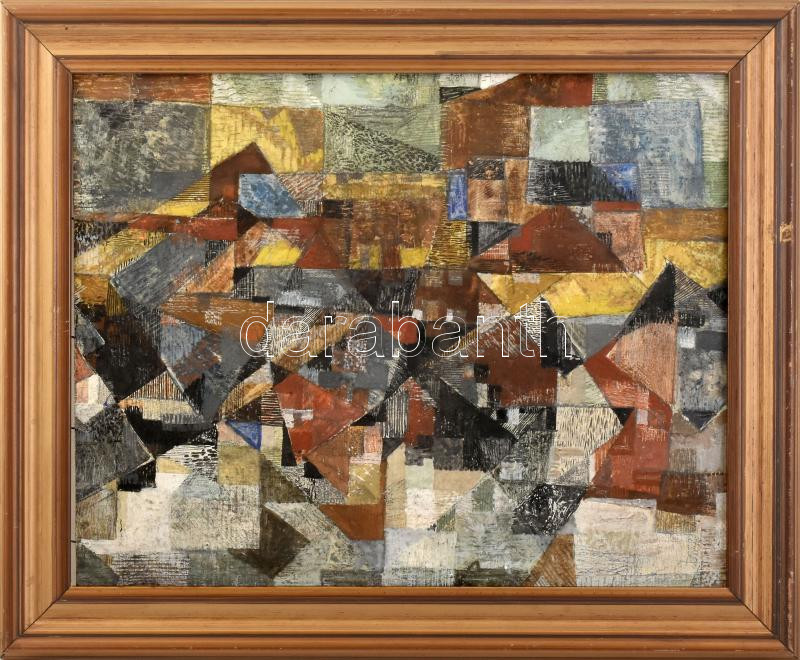 Bartha László (1908-1998): Geometrikus városkép. Vegyes technika, karton, jelzett a hátoldalán. Fakeretben. 37×47 cm. / mixed technique on board, signed, framed<a href="https://www.darabanth.com/hu/nagyaukcio/40/kategoriak~Festmenyek-es-grafikak/Kor