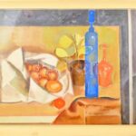 Baska József (1935-2017): Csendélet. Olaj, vászon, jelzett. Hátoldalán Képcsarnok Vállalat címkéjével. Üvegezett keretben. 60×80 cm
