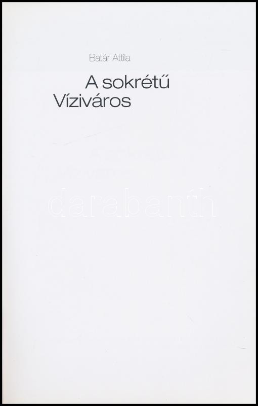Batár Attila: A sokrétű Víziváros. Bp., 2002, HVG. Kiadói papírkötés, gazdag feket-fehér képanyaggal. Szép állapotban.