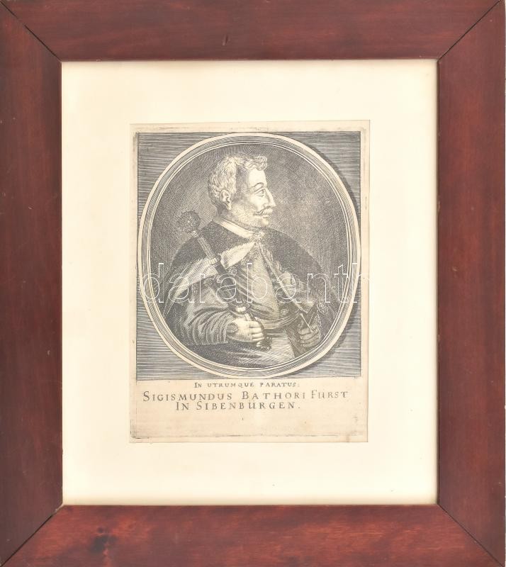 Báthory Zsigmond erdélyi fejedelem mellképe (Sigismundus Bathori Fürst in Sibenbürgen). Rézmetszet, papír. Ortelius redivivus et continuatus… című munkában jelent meg (Nürnberg, 1665). Üvegezett fakeretben, 18×13 cm<a href="https://www.darabanth.c