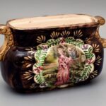 Belga jardinere, kézzel festett fajansz, jelzett, kopott, h:30cm, m:16cm<a href="https://www.darabanth.com/hu/gyorsarveres/414/kategoriak~Porcelan-keramia-uveg/Porcelan~500006/Belga-jardinere-kezzel-festett-fajansz-jelzett-kopott-h30cm-m16cm~II25925