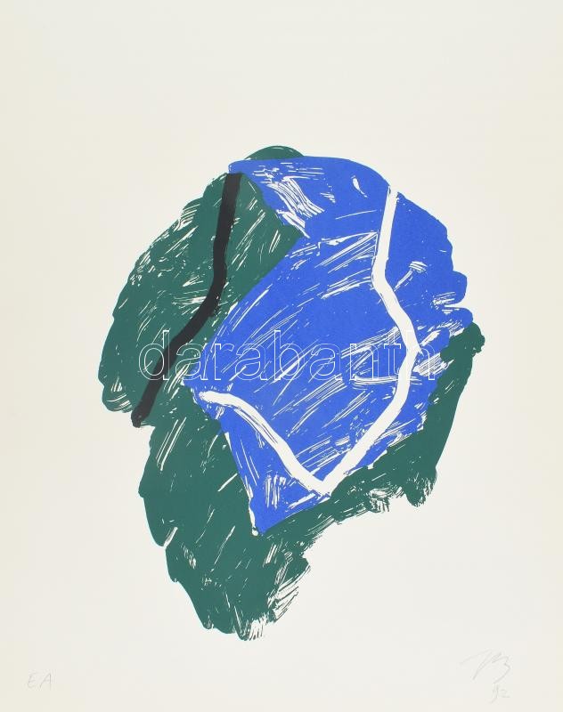 Bér János (1937-2021): Zöld-kék kompozíció, 1992. Szitanyomat, papír, jelzett, művészpéldány E.A. jelzéssel. Lapméret: 65×50 cm / Screenprint on paper, signed, artist’s proof.<a href="https://www.darabanth.com/hu/gyorsarveres/427/kategoriak~Festmeny