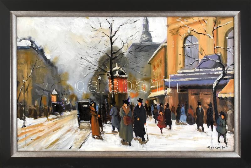Berkes jelzéssel: Havas város. Olaj, vászon. Dekoratív fa keretben, 50×80 cm