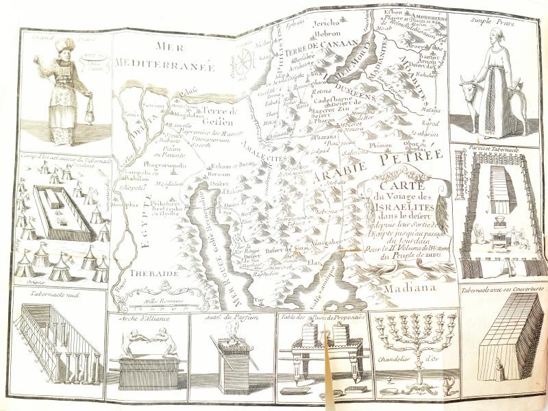 Berruyer, Isaac-Joseph: Histoire du peuple de Dieu, depuis son origine jusqu’? la naissance du messie I.-III. Paris, 1739. Bordelet. Számos melléklettel, kihajtható térképekkel. Korabeli, aranyozott egészbőr kötésben. II. kötet kötése sérült, lapokon folt