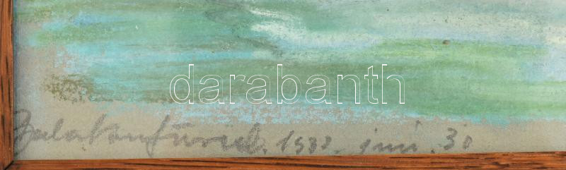 Bertalan Rózsa (1900-1987): Balatonfüredi part vitorlással, 1930-as évek. Pasztell, papír, jelzés nélkül, balra lent autográf, nehezen olvasható datálással, 17×25,5 cm. Üvegezett fakeretben.