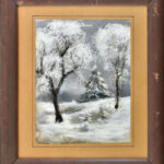 Bertalan Rózsa (1900-1987): Téli táj, 1930-as évek. Pasztell, papír, jelzés nélkül, balra lent autográf felirattal és datálással, 28×21,5 cm, üvegezett fakeretben, sérült üveggel.