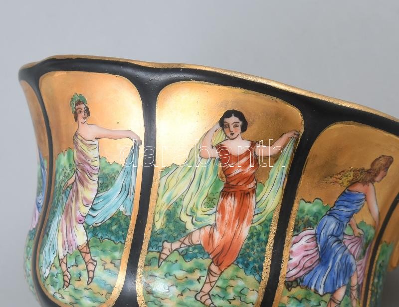 BF jelzéssel: nimfákat ábrázoló, kézzel festett porcelán teás csésze aljjal.<a href="https://www.darabanth.com/hu/gyorsarveres/416/kategoriak~Porcelan-keramia-uveg/Porcelan~500006/BF-jelzessel-nimfakat-abrazolo-kezzel-festett-porcelan-teas-csesze-al