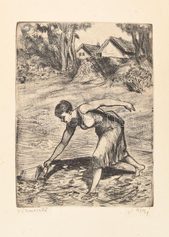 Biai-Föglein István (1905-1974): Vízmerítő. Rézkarc, papír, jelzett, kartonra kasírozva, lapszéli foltokkal, 26×19,5 cm<a href="https://www.darabanth.com/hu/gyorsarveres/433/kategoriak~Festmenyek-es-grafikak/Festmenyek-es-grafikak~500001/Biai-Foglei
