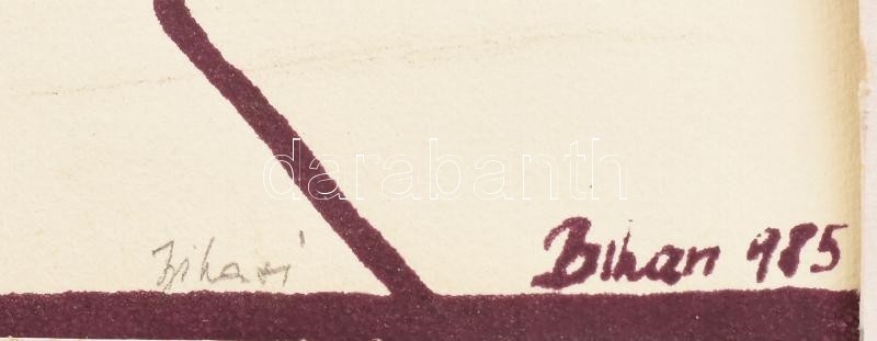 Bihari jelzéssel: Szentendrei kapu. Linómetszet, papír. Fa keretben. 28×25,5 cm