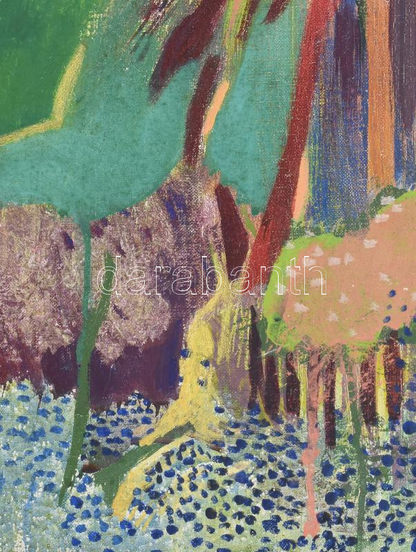 Bikácsi Daniela (1943- ): Nyári éjszaka (Széchenyi templom). Olaj, vászon. Jelezve jobbra lent. Hátoldalán Képcsarnok Vállalat címkéjével. Dekoratív fakeretben. 60×90 cm / oil on canvas, signed, framed.<a href="https://www.darabanth.com/hu/nagyaukci