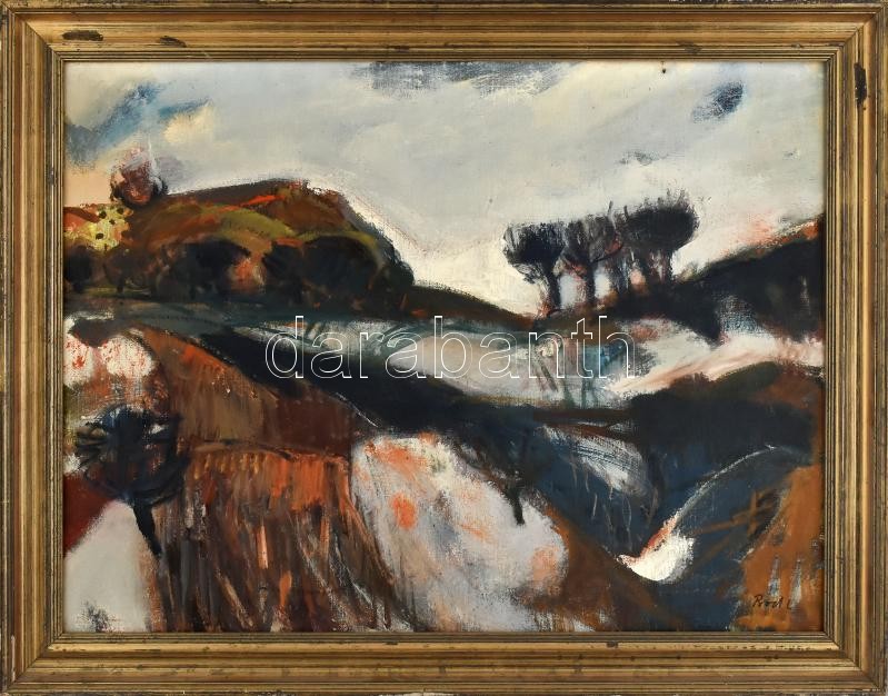 Bod László (1920-2001): Szőlőhegy. Olaj, vászon, jelzett, hátoldalon Képcsarnok Vállalat címkéjével. Dekoratív, kissé sérült fakeretben, 60×80 cm<a href="https://www.darabanth.com/hu/gyorsarveres/414/kategoriak~Festmenyek-es-grafikak/Festmenyek-es-g