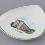 Bodrogkeresztúri kerámia tálka, Aggtelek Cseppkő Szálló mintával, 1970-es évek. Részben kézzel festett, matricával jelzett, minimális kopással, 11×11 cm
