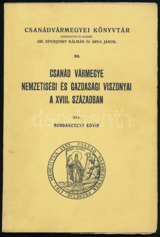 Bohdaneczky Edvin: Csanád vármegye nemzetiségi és gazdasági viszonyai a XVIII. században. Csanádvármegyei Könyvtár 36. Makó,1940.,Makói Könyvnyomda,92+1 p. Kiadói papírkötés, jó állapotban.<a href="https://www.darabanth.com/hu/gyorsarveres/420/kateg
