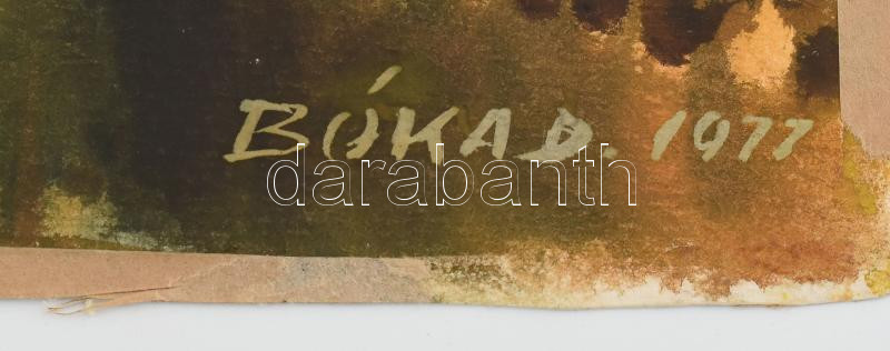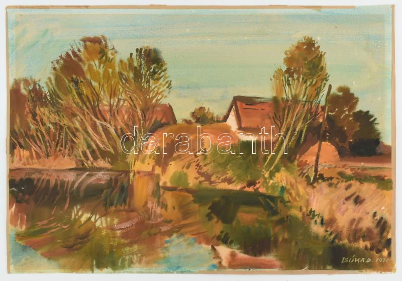 Bóka Dezső (1935-): Vízpart, 1977. Akvarell, papír, jelzett. Szélén paszpartuzás nyomaival. 35×50 cm<a href="https://www.darabanth.com/hu/gyorsarveres/432/kategoriak~Festmenyek-es-grafikak/Festmenyek-es-grafikak~500023/Boka-Dezso-1935-Vizpart-1977-A