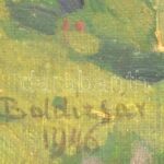 Boldizsár István (1897-1984): Majális Budapesten, 1946. Olaj, vászon, jelezve balra lent. Dekoratív, kissé sérült fa keretben, 60×80 cm. / István Boldizsár (1897-1984): Budapest, 1st of May, 1946. Oil on canvas, signed lower left. Framed. 60×80 cm<a