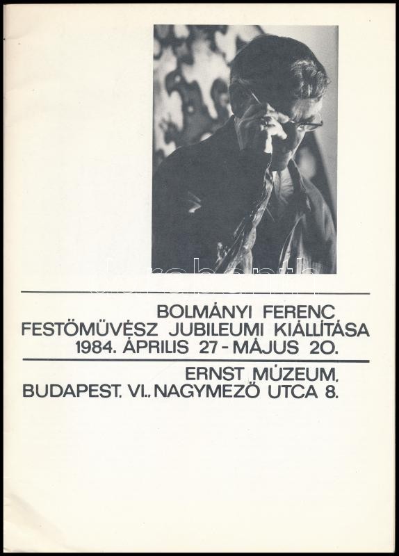Bolmányi Ferenc festőművész jubileumi kiállítása. Ernst Múzeum, 1984. április 27 – május 20. Bp., 1984, Műcsarnok, 16 p. Fekete-fehér képekkel illusztrált. Kiadói tűzött papírkötés, kissé sérült, kopott borítóval.