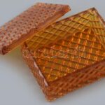 Borostyánüveg cseh doboz, kopásnyomokkal, 12x9x6cm