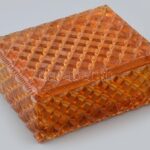 Borostyánüveg cseh doboz, kopásnyomokkal, 12x9x6cm