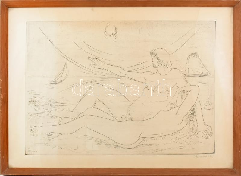Borsos Miklós (1906-1990): Vízparti aktok. Rézkarc, papír, jelzett. Üvegezett fakeretben, 48×69 cm<a href="https://www.darabanth.com/hu/gyorsarveres/417/kategoriak~Festmenyek-es-grafikak/Festmenyek-es-grafikak~1/Borsos-Miklos-1906-1990-Vizparti-akto