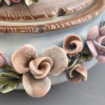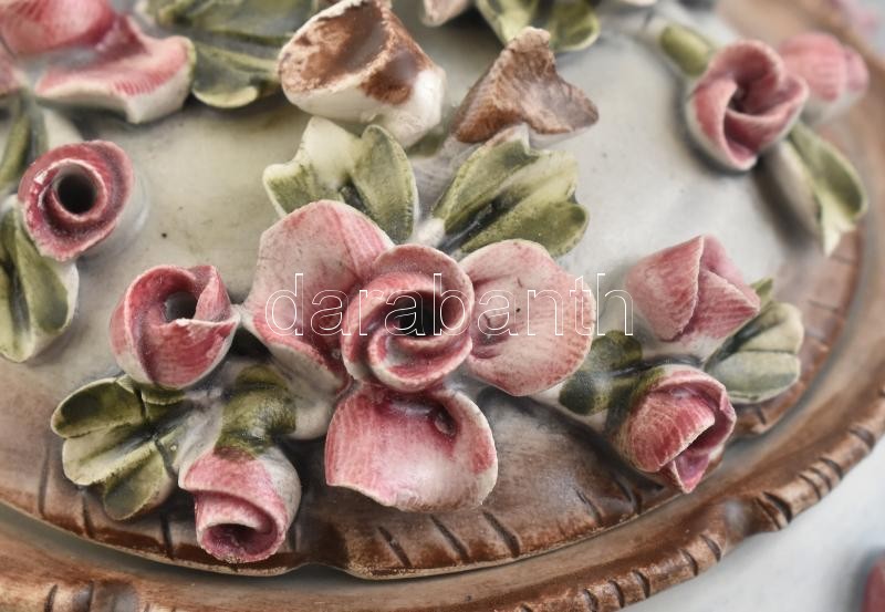 Capodimonte bonbonier plasztikus rózsákkal. Kézzel festett, jelzett, minimális lepattanásokkal, d: 11 cm