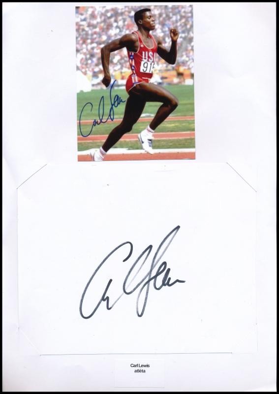 Carl Lewis (1961-) amerikai atléta aláírása papírlapon