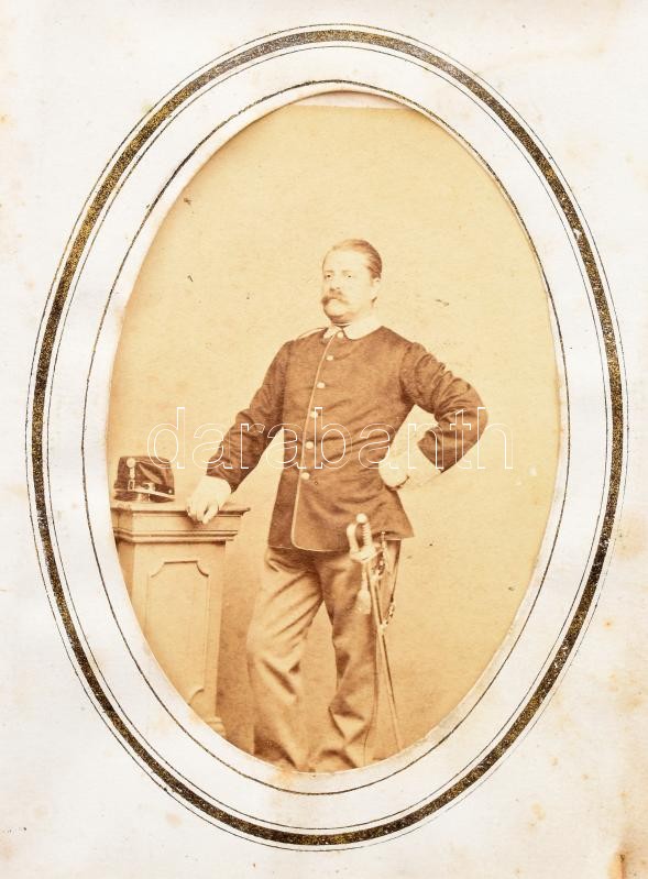 cca 1860-1870 fotó gyűjtemény 25 db vizitkártyával, közötte két ferrotípia. nemesek és azonosításra váró személyek. Korabeli, réz veretes fótóalbumban.<a href="https://www.darabanth.com/hu/gyorsarveres/415/kategoriak~Fotomuveszet/Foto~500021/cca-186