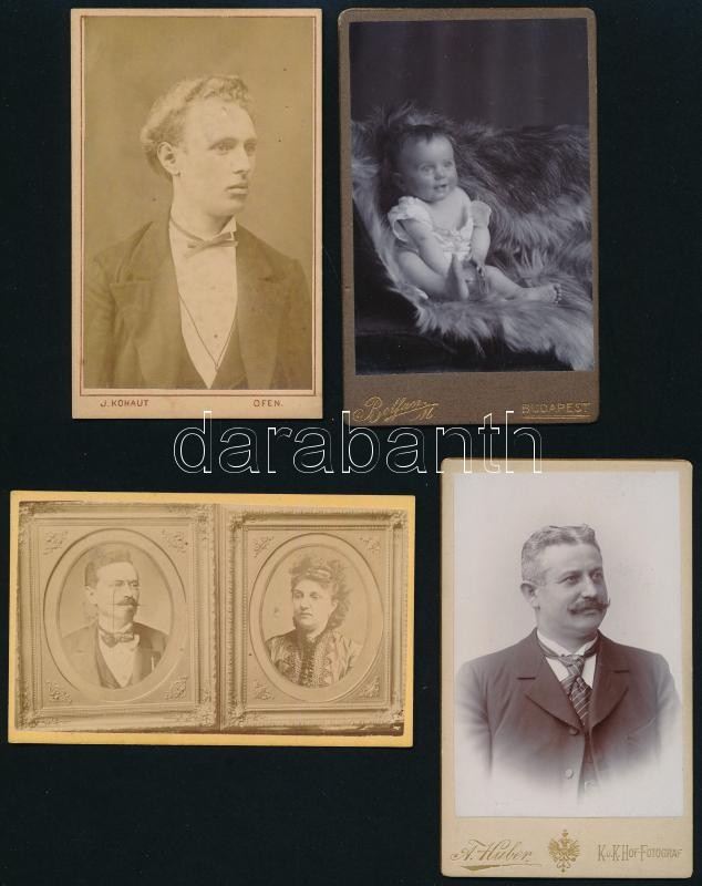 cca 1880-1910 4 db keményhátú fotó temesvári, budai, budapesti és bécsi műtermekből, 10,5×6,5 cm<a href="https://www.darabanth.com/hu/gyorsarveres/417/kategoriak~Fotomuveszet/Foto~22/cca-1880-1910-4-db-kemenyhatu-foto-temesvari-budai-budapesti-es-be