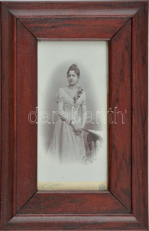 cca 1890-1900 Fiatal hölgy portréja. Keményhátú fotó Carl Pietzner bécsi udvari fényképész műterméből. Üvegezett, kitámasztható, kissé sérült fakeretben. 20×9,5 cm<a href="https://www.darabanth.com/hu/gyorsarveres/419/kategoriak~Fotomuveszet/Foto~50