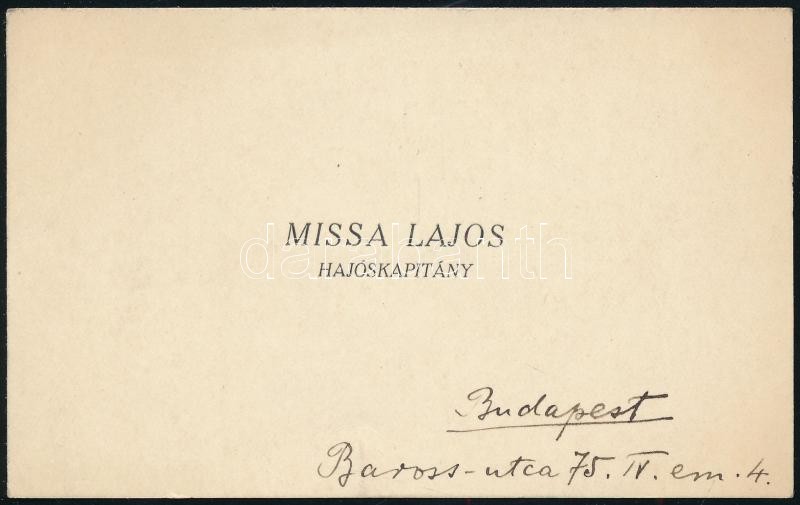 cca 1890 Missa Lajos autográf sorai névjegykártyáján, melyben felajánl egy Ferenc József -Erzsébet királyné házassagi évforduló emlékérmet<a href="https://www.darabanth.com/hu/gyorsarveres/415/kategoriak~Mutargy-papirregiseg-egyeb/Tortenelmi-dokumen