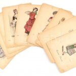 cca 1900 C. Heinemann jelzéssel 13 db különféle ölözeteket viselő nőket ábrázoló litográfia: orosz parasztasszony, fundango, francia forradalmi lány stb. Kőnyomat-papír / lithography 20×28 cm