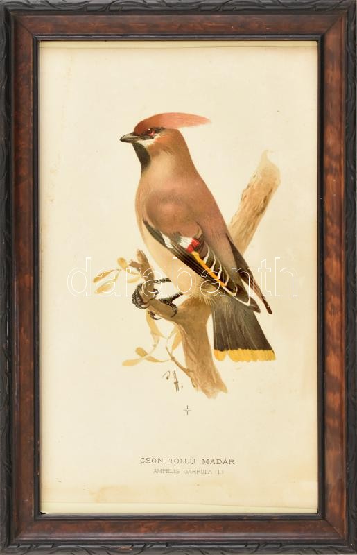 cca 1900 Csonttollú madár. Kromolitográfia, papír, kissé foltos. 24×14,5 cm<a href="https://www.darabanth.com/hu/gyorsarveres/414/kategoriak~Festmenyek-es-grafikak/Metszetek~500004/cca-1900-Csonttollu-madar-Kromolitografia-papir-kisse-foltos-24×14-5