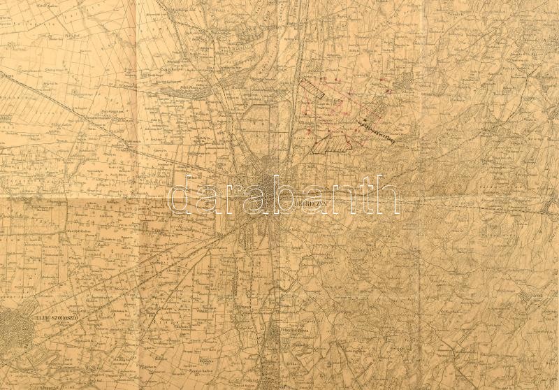 cca 1900 Debrecen és környéke katonai térkép ceruzás jelölésekkel, 1:75 000, 37×53 cm<a href="https://www.darabanth.com/hu/gyorsarveres/420/kategoriak~Mutargy-papirregiseg-egyeb/Militaria~500028/cca-1900-Debrecen-es-kornyeke-katonai-terkep-ceruzas-j