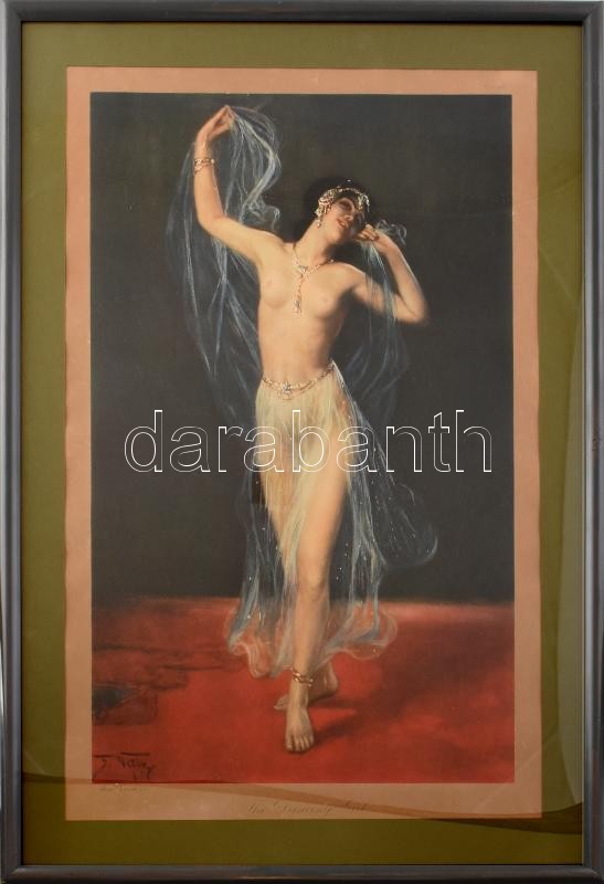 cca 1900- Frederick (Fred) Vezin (1859-1933) festménye után: Táncosnő (dancing girl). Nyomat, papír, jelzett a nyomaton. Üvegezett fa keretben, 57×36 cm<a href="https://www.darabanth.com/hu/gyorsarveres/412/kategoriak~Festmenyek-es-grafikak/Metszete