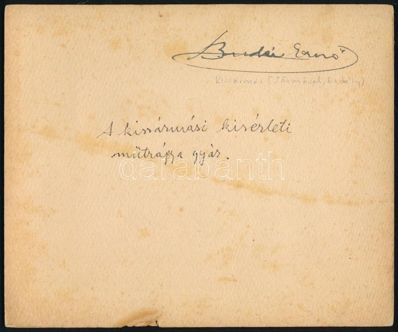 cca 1910 Kissármás (Sarmasu, Erdély) Kísérleti műtrágyagyár 8×11 cm fotó, paszpartuban, feliratozva, karton mérete 14×17 cm / Fertiliser factory<a href="https://www.darabanth.com/hu/nagyaukcio/38/kategoriak~Mutargy-szobor-papirregiseg/Foto~15584/cca