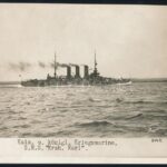 cca 1914-1918 SMS Erzherzog Karl, az Osztrák-Magyar Császári és Királyi Haditengerészet (K.u.K. Kriegsmarine) Erzherzog Karl-osztályú pre-dreadnought csatahajója (Schlachtschiff), feliratozott fotó, az egyik sarkán kissé sérült,
