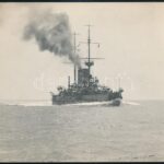 cca 1914-1918 SMS Zrínyi, az Osztrák-Magyar Császári és Királyi Haditengerészet (K.u.K. Kriegsmarine) Radetzky-osztályú pre-dreadnought csatahajója (Schlachtschiff), a hátoldalán feliratozott fotó, jó állapotban, 15×10 cm / cca 1914-1918 SMS Zrínyi, the R