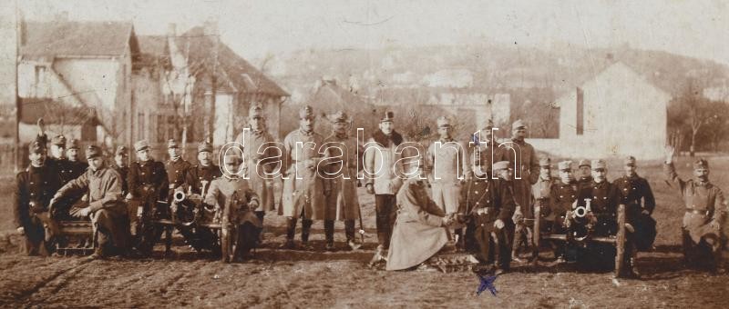 cca 1914-1918 Wéber Ferenc tüzértizedes katonatársaival az első világháborúban, kartonra kasírozott fotó, hátoldalon feliratozva, 11×15 cm<a href="https://www.darabanth.com/hu/nagyaukcio/38/kategoriak~Militaria/Militaria~15963/cca-1914-1918-Weber-Fe