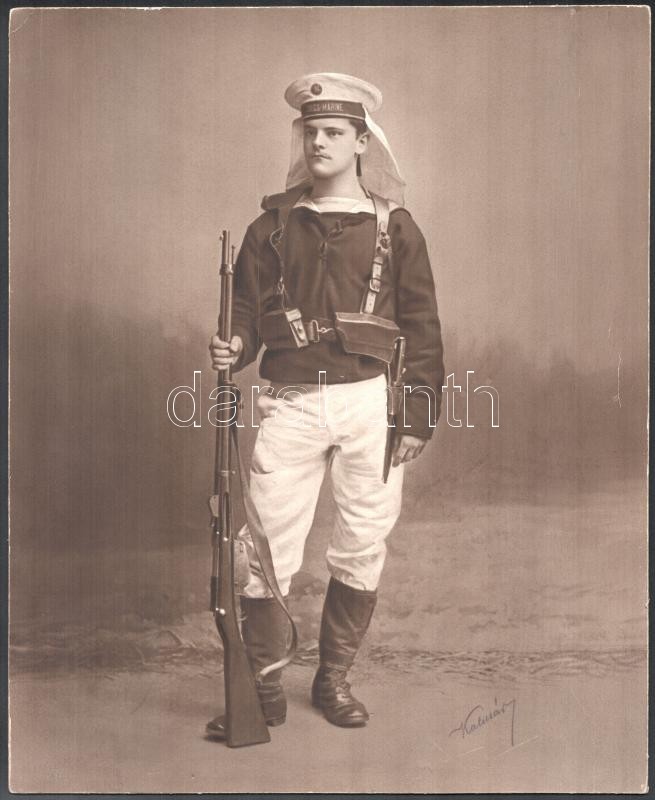 cca 1916 k.u.k. Kriegsmarine haditengerész trópusi egyenruhában. Kalmár jelzésű nagyméretű kartonált fotó 26×32 cm / Austro Hungarian navy officer in tropical uniform large photo<a href="https://www.darabanth.com/hu/gyorsarveres/417/kategoriak~Mutar
