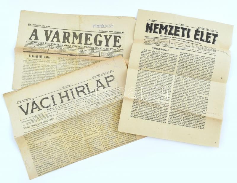 cca 1920-1930 3 db ritkább újság: Nemzeti Élet (Budaváry László lapja), Váci Hírlap, A vármegye