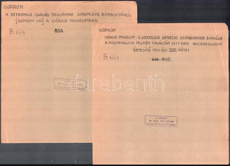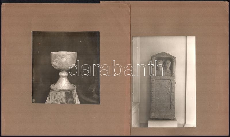 cca 1920-1940 Sopron környékén talált ókori sírkövek, régészeti leletek a Városi Múzeumban, 4 db fotó kartonlapokra ragasztva, hátoldalukon feliratozva, 13,5×5 cm és 17,5×12,5 cm között<a href="https://www.darabanth.com/hu/gyorsarveres/417/kategoria