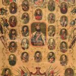 cca 1920 A szerb királyok és családjuk nagyméretű litografált képe, vásznon, gyűrődésekkel / Family tree of the Serbian kings and families. Large lithography on canvas, with creases 50×70 cm<a href="https://www.darabanth.com/hu/nagyaukcio/38/kategor