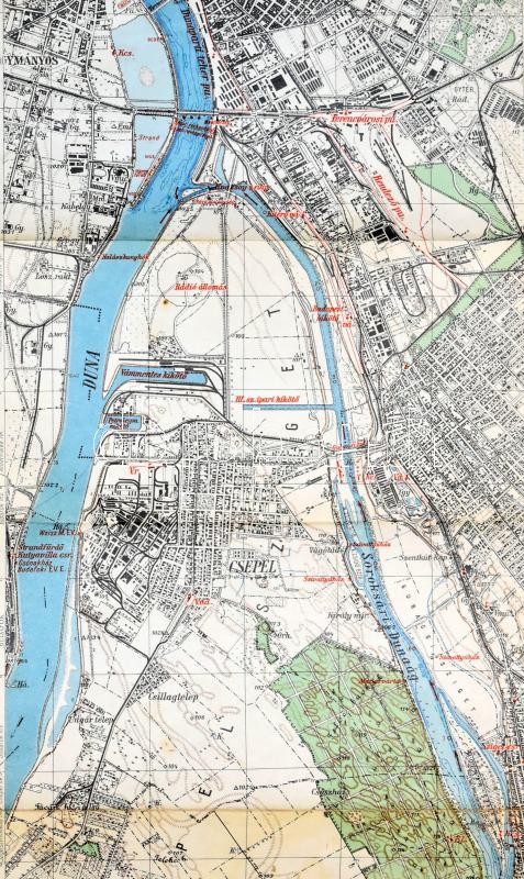 cca 1930-1940 A Soroksári Dunaág térképe. Vízisporttérképek 11. sz. 1 : 25.000. Bp., M. Kir. Állami Térképészet. Kisebb szakadásokkal, foltokkal, 202×24 cm