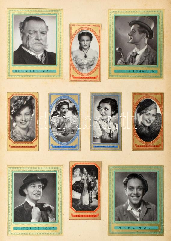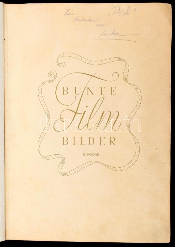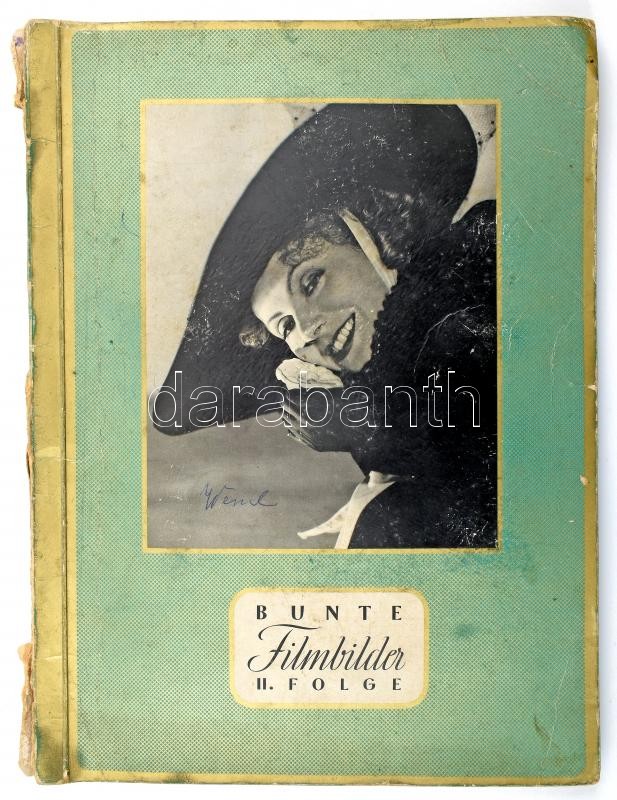 cca 1930-1940 Bunte Filmbilder, II. Folge, német nyelvű gyűjtőfüzet, színésznők és színészek képeivel (Greta Garbo, Lilian Harvey, Tasnády Fekete Mária, stb.), 250 db beragasztott gyűjtőképpel (komplett!), papírkötésben, sérült borítóval<a href="htt